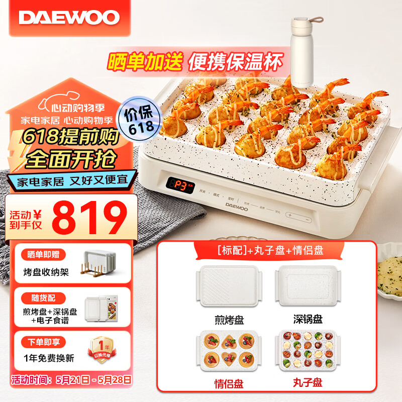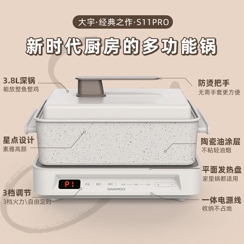 大宇(DAEWOO)多功能锅网红料理锅 家用电火锅电热炒锅电烧烤炉电蒸锅电煮锅 S11PRO(标配+双盘)价格:819.00元!