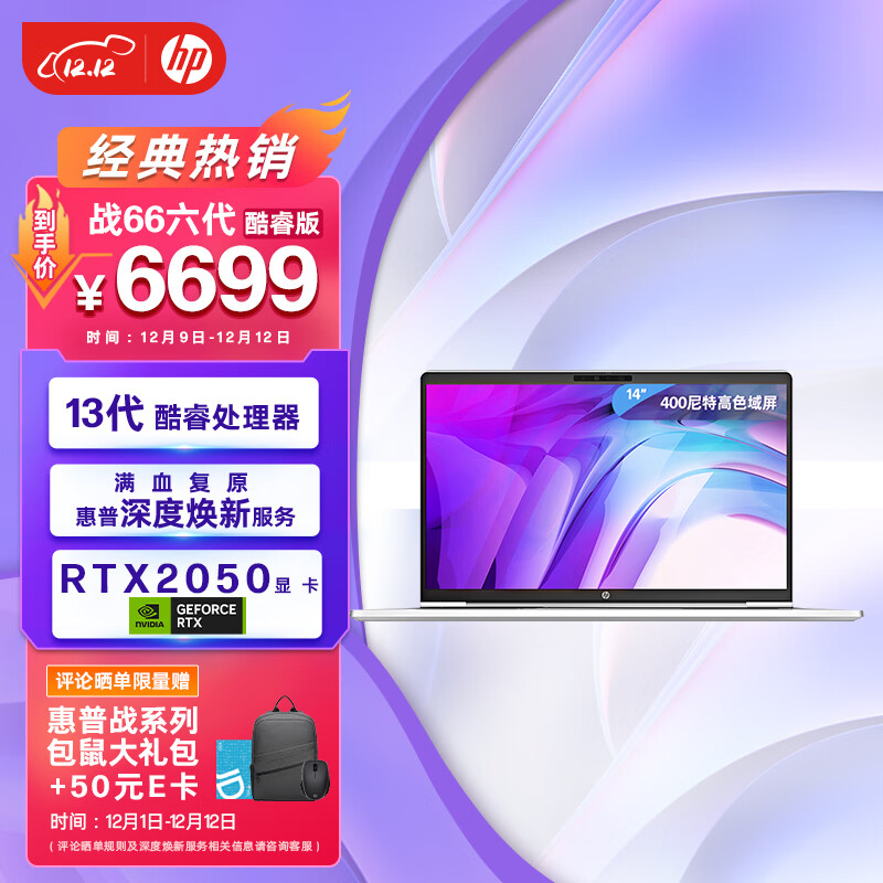 惠普(HP)战66 六代2023酷睿14英寸轻薄笔记本电脑(英特尔13代i7-1355U 32G 1T RTX2050 高色域低功耗 AI新体验高性能)价格:7199.00元!