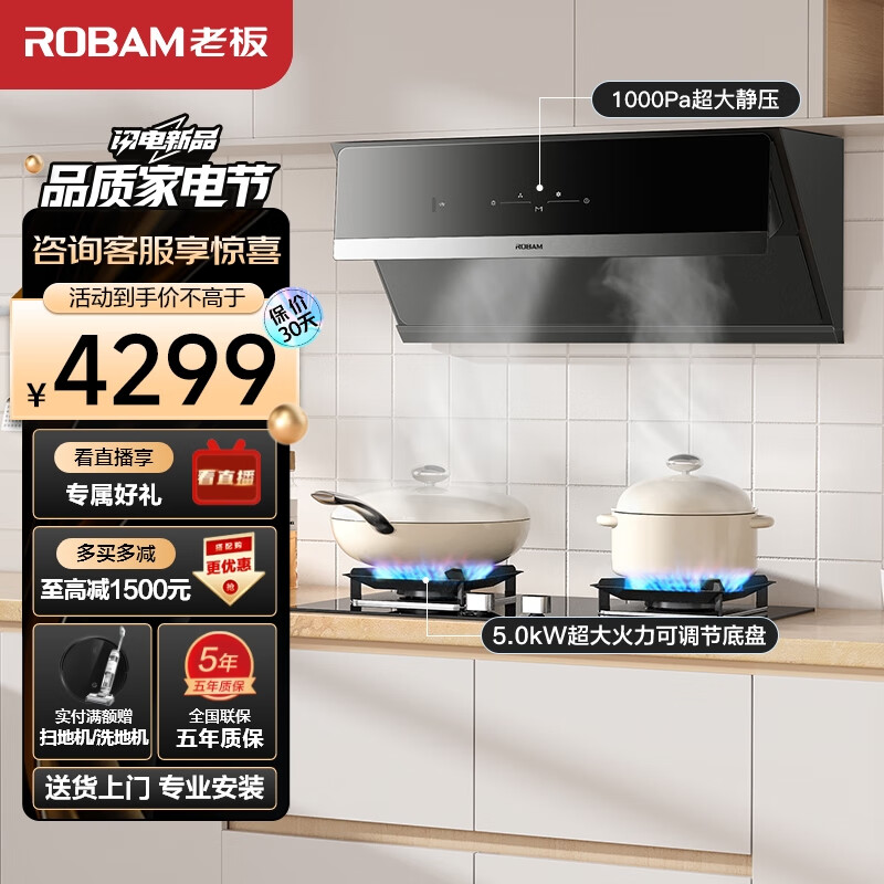 老板(Robam)(Robam) 抽油烟机家用变频烟机燃气灶烟灶套装22m3/min侧吸吸油烟机灶具28D02S+57B6D液化气价格:4299.00元!