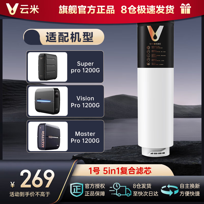 云米(VIOMI)云米净水器滤芯Super1000G/1200G /Super Pro、Vision Pro 1200G 澎湃、Easy3系列通用滤芯 1号5in1滤芯(仅支持PRO1200)价格:269.00元!