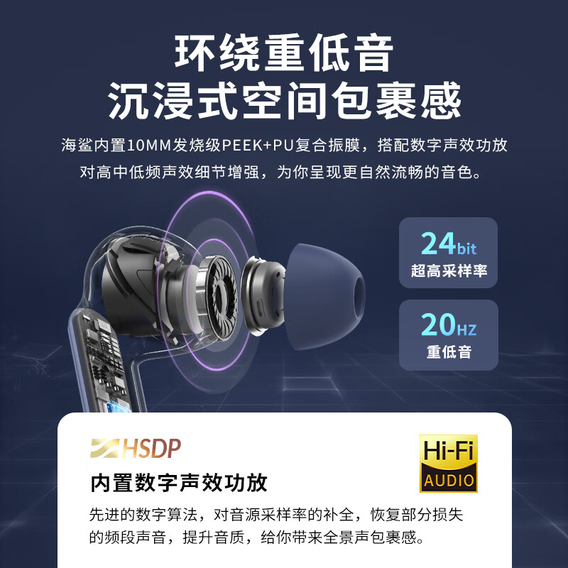 蛇圣海鲨【柏林之声丨超感音质】ANC主动降噪真无线蓝牙耳机入耳式游戏通话降噪电竞音乐HiFi运动跑步 鲁士蓝【AAC无损音质|蓝牙5.4】 兼容苹果安卓系统手机通用价格:329.00元!