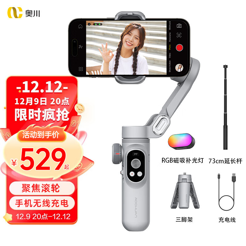 奥川手机稳定器三轴防抖手持云台vlog拍摄视频平衡自拍跟拍直播X Pro标配【摄影套装】价格:529.00元!