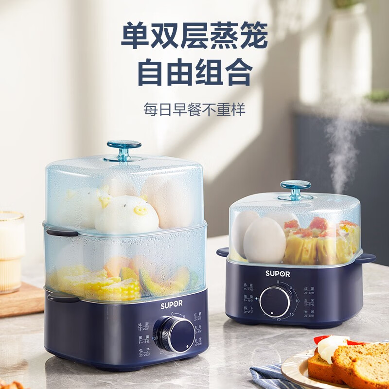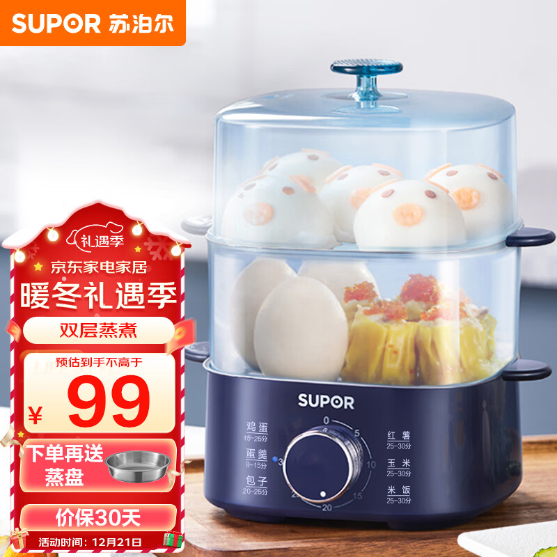 苏泊尔(SUPOR)煮蛋器 蒸蛋器 小蒸锅 煮鸡蛋神器 旋钮可定时自动断电双层 家用迷你鸡蛋羹多功能锅 Z15FK853价格:89.00元!