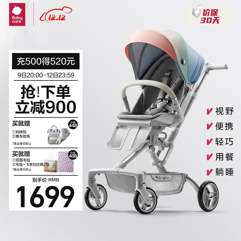 babycare婴儿头等舱推车遛娃遛神器溜娃童车可坐可躺双向推行-蒙因渐变价格:2599.00元!