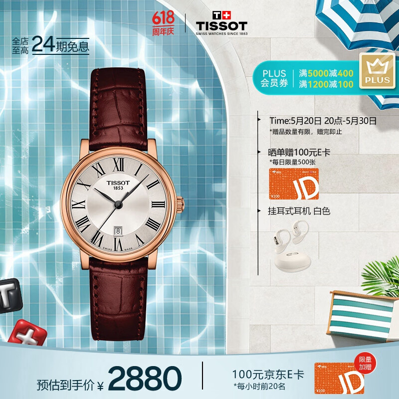 天梭(TISSOT)手表 卡森臻我系列皮带石英女表 520送女友T122.210.36.033.00价格:3200.00元!