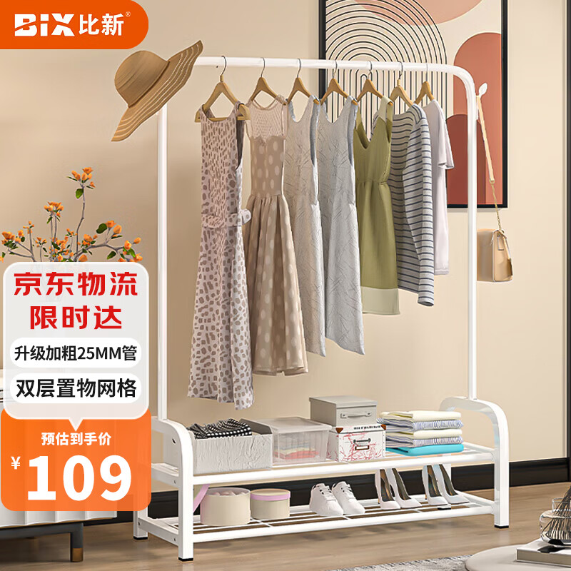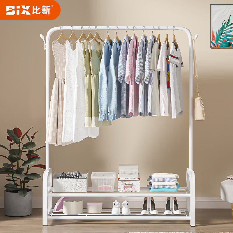 比新晾衣架落地衣架挂衣晾衣杆卧室晒衣架子双置物网1.2米BX-L5205W价格:109.00元!
