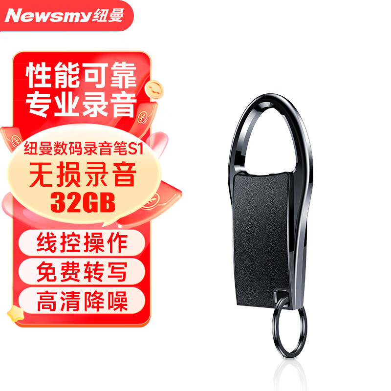 纽曼数码录音笔 S1 32G 高清降噪 一键录音 学习培训 商务会议 操作简单 录音转文字 黑色价格:238.00元!