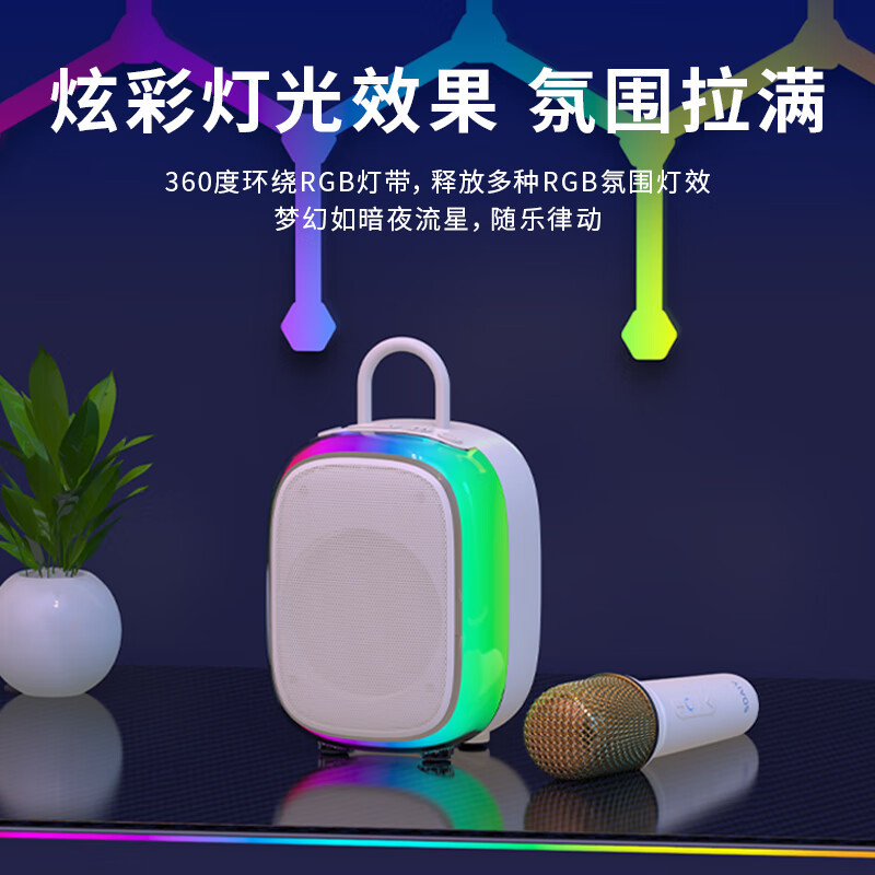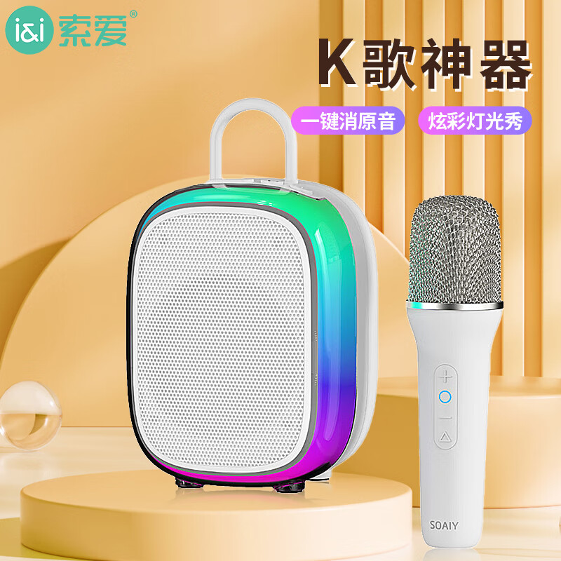索爱(soaiy)麦克风音响一体带话筒k歌家庭KTV自带声卡蓝牙音箱神器无线唱歌家用卡拉ok SK68单麦苹果白价格:129.00元!