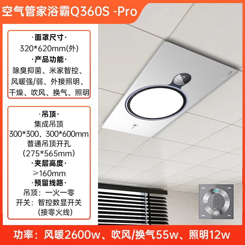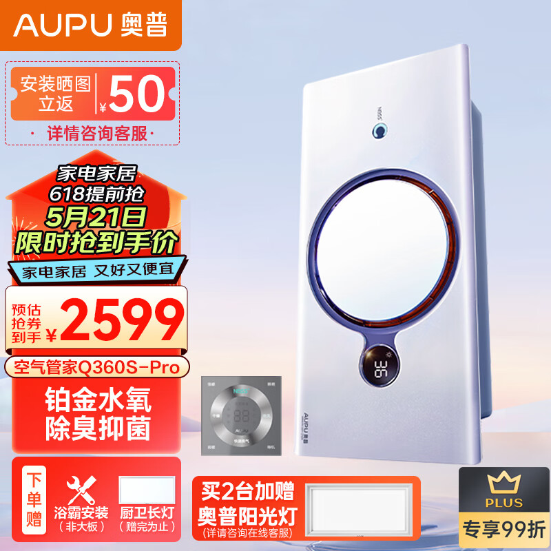 奥普(AUPU)浴霸Q360S-Pro空气管家热能环风暖铂金水氧数显 已接入米家价格:2999.00元!