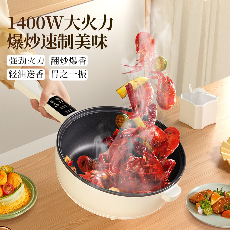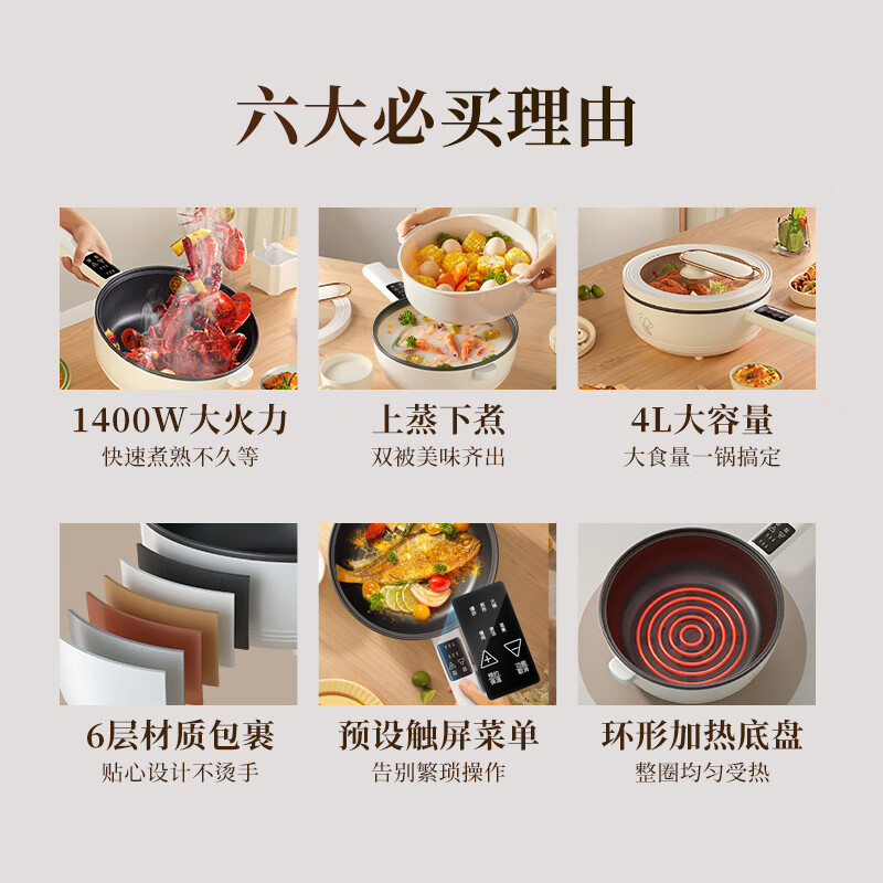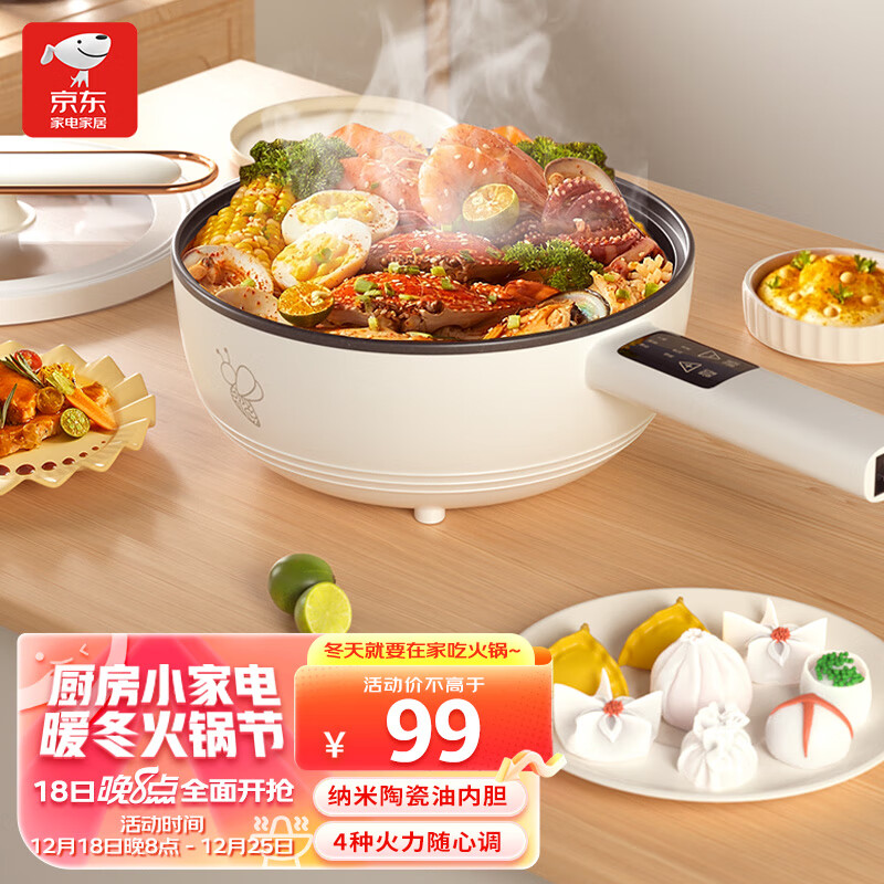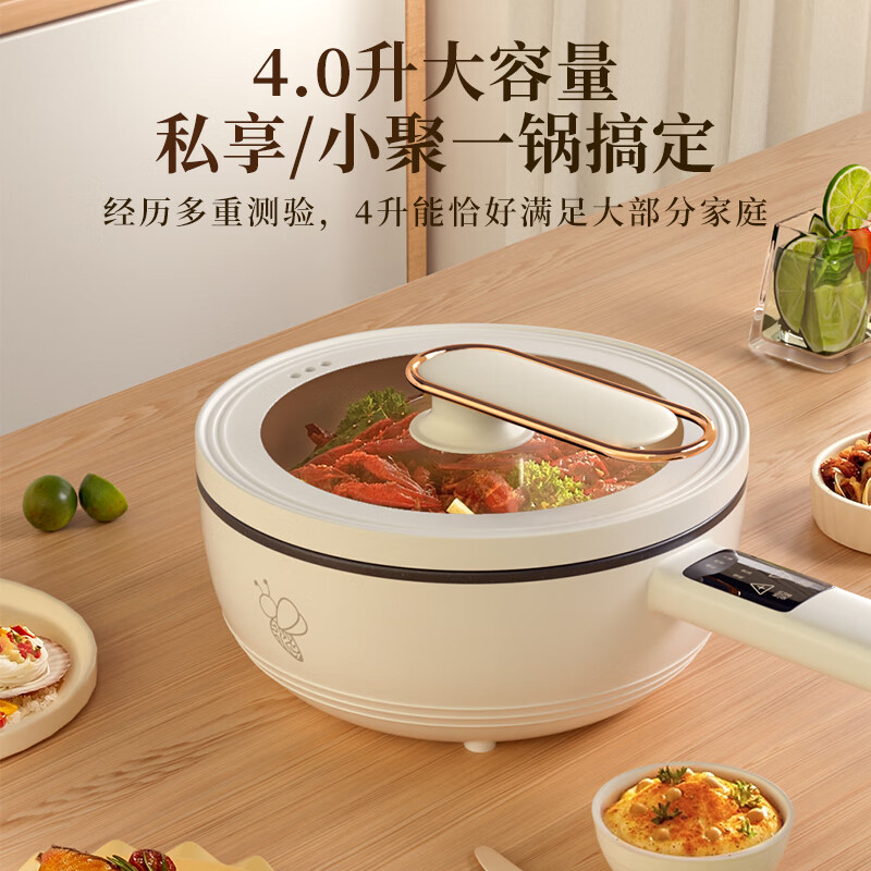 智选京品 小迷蜂电煮锅宿舍小电锅火锅多功能蒸煮炒大容量不粘智能菜单定时 4L电子款不带笼价格:99.00元!