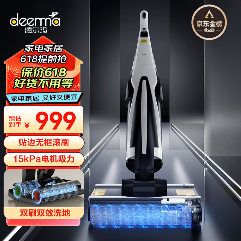 德尔玛(Deerma)P20双滚刷智能洗地机 防缠绕沿边家用洗拖吸一体机电动拖把手持吸尘器扫地机自清洁价格:1199.00元!