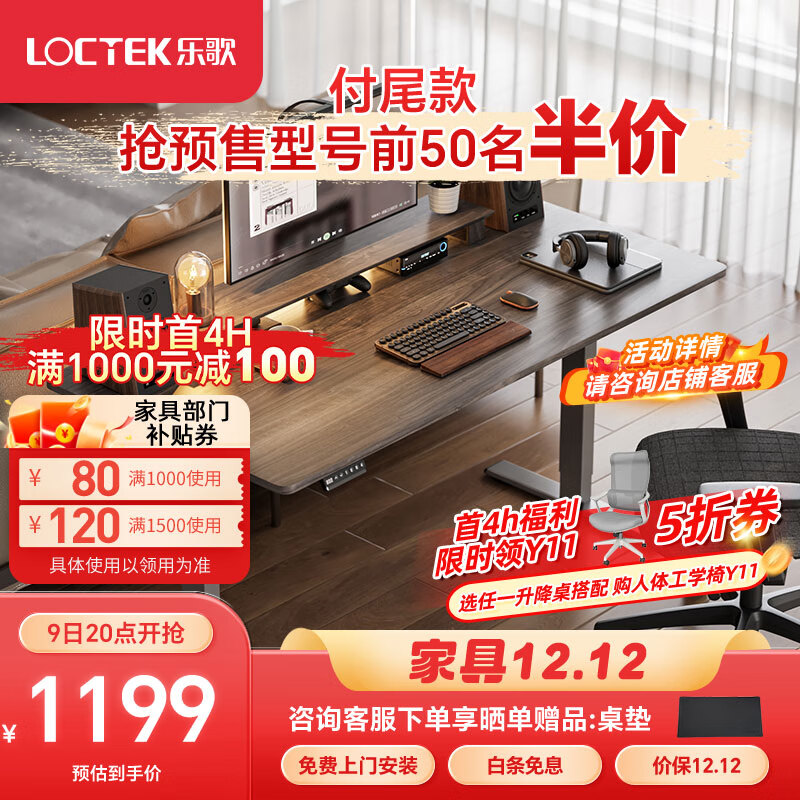 乐歌电动升降电脑桌站立式书桌家用台式写字桌书桌E2灰胡桃木色1.2m桌价格:1299.00元!