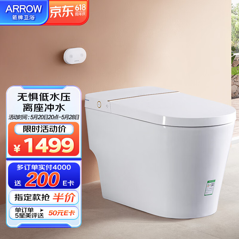 箭牌(ARROW)智能马桶一体小户型低水压自动冲水电动轻智能坐便器AX1201 400坑价格:1749.00元!