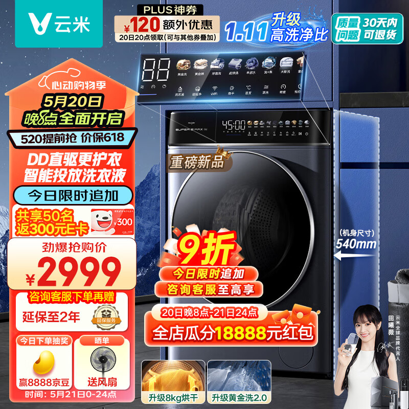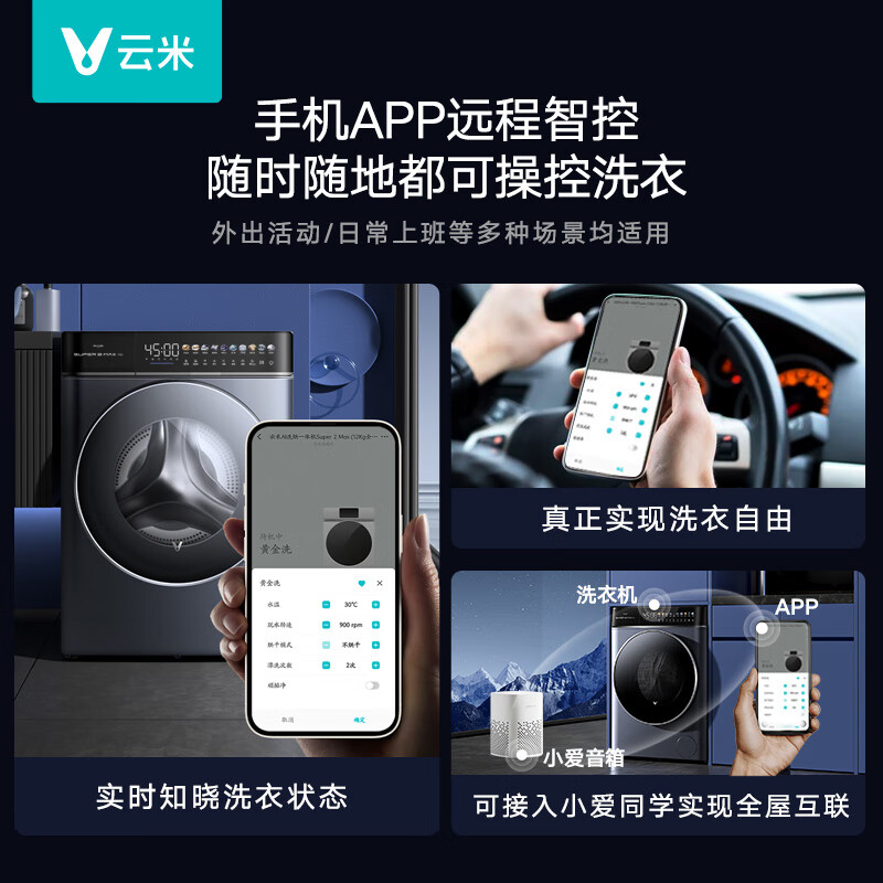 云米(VIOMI)全自动直驱变频滚筒洗衣机 超薄大筒径 臻彩大屏 12公斤大容量 洗净比1.11 智能投放 WD12FE-B6A价格:3299.00元!
