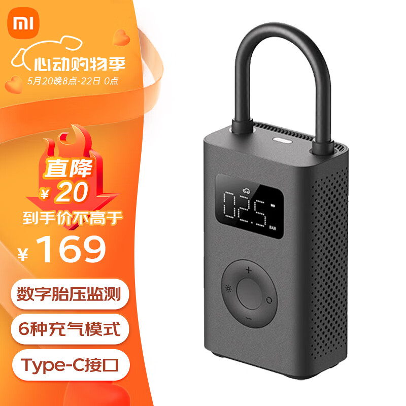 小米(MI)米家充气宝2车载电动充气泵胎压检测内置电池自行车篮足球打气筒价格:169.00元!