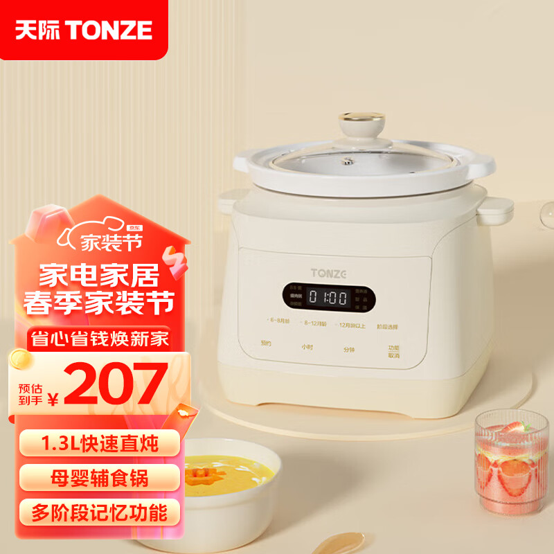 天际辅食机 婴儿熬煮粥煲汤电炖锅 bb煲汤专用容量快炖辅食锅MY-DGD13AW价格:207.00元!