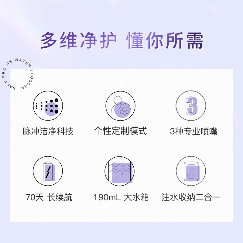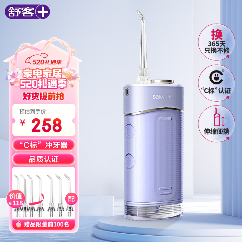 舒客舒克冲牙器洗牙器水牙线 全身水洗伸缩便携 大容量水箱 3种专业喷嘴H5 星云紫 情人节礼物价格:419.00元!