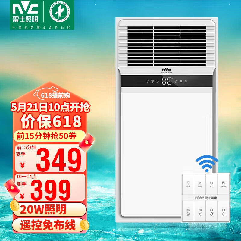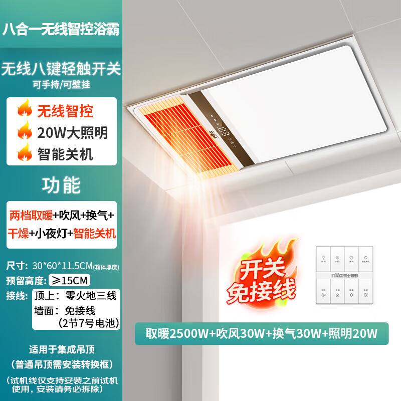 雷士(NVC)八合一智能无线风暖浴霸排气扇照明一体卫生间暖风机集吊Y246价格:599.00元!