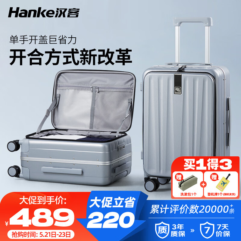 汉客行李箱男拉杆箱女旅行箱69升大容量24英寸环保灰镇店前侧开盖铝框价格:709.00元!