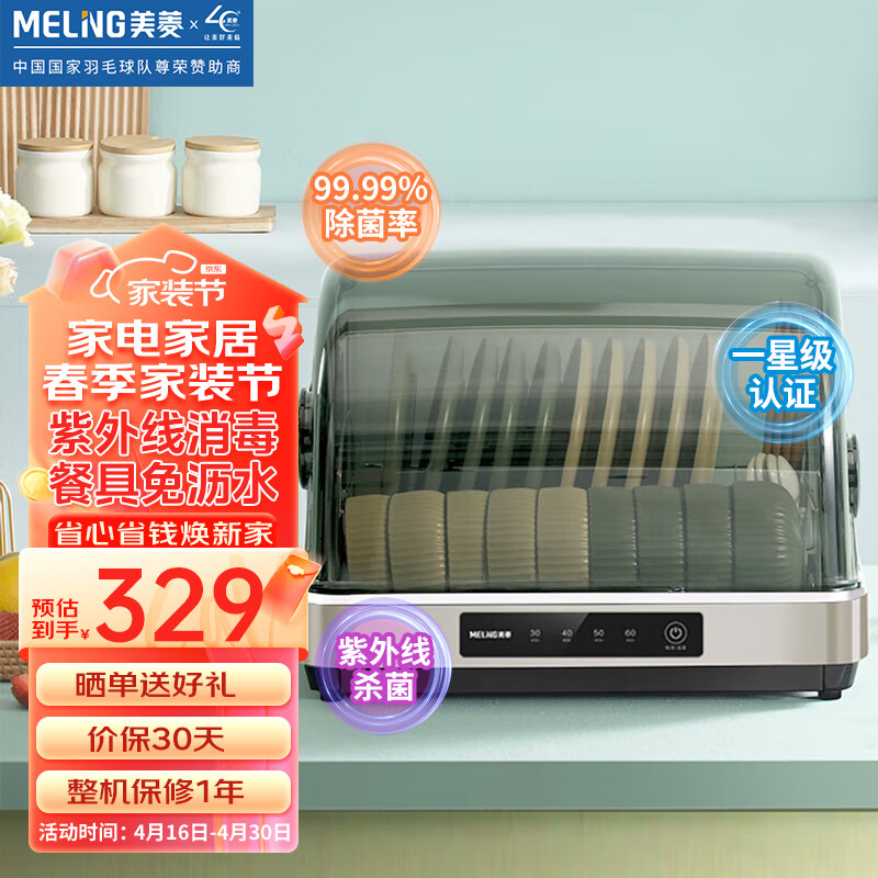 美菱(MeiLing)消毒柜家用 小型消毒碗柜台式厨房碗筷紫外线茶杯餐具消毒柜 免沥水热风烘干价格:329.00元!