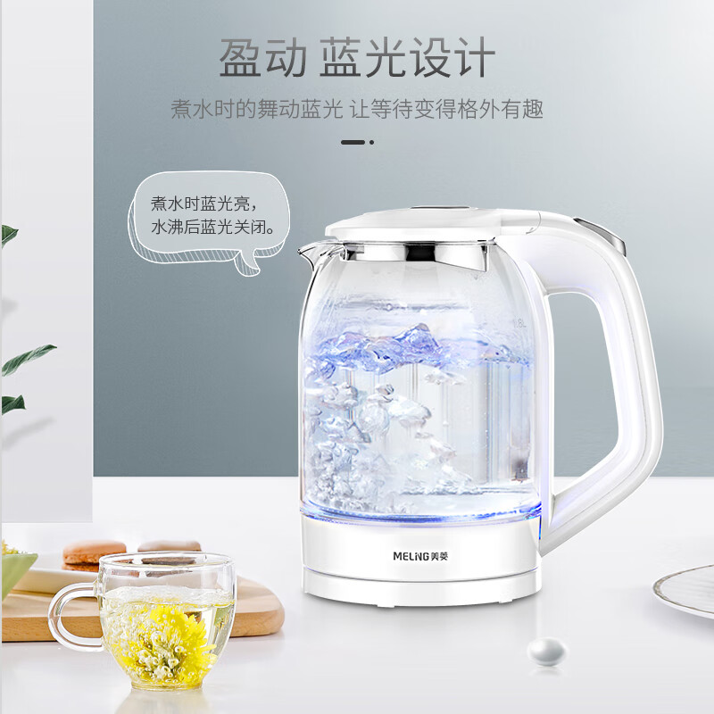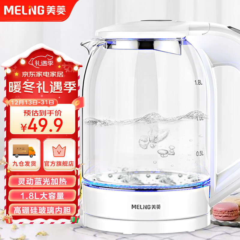 美菱(MeiLing)电水壶1.8L高硼硅玻璃烧水壶热水壶家用电热水壶MH-WB02价格:49.90元!