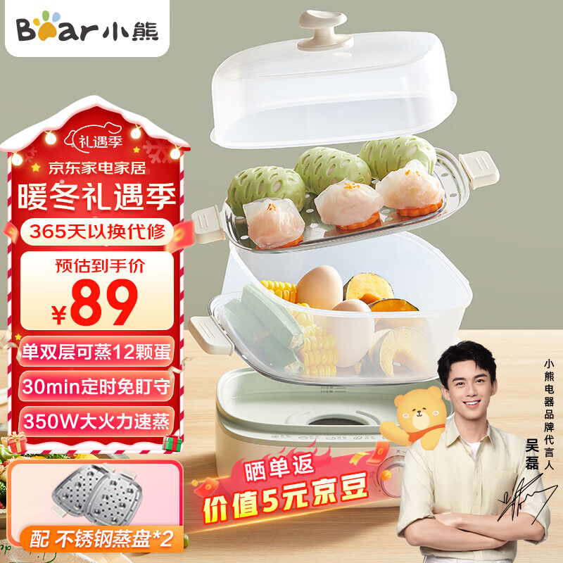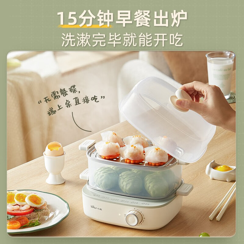 小熊(Bear)煮蛋器 蒸蛋器 电蒸锅煮鸡蛋神器旋钮可定时自动断电双层 家用迷你鸡蛋羹蒸锅价格:89.00元!