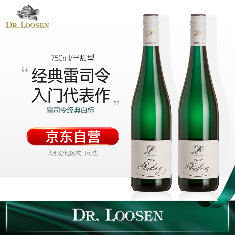 露森(Dr. Loosen)雷司令白葡萄酒半甜型 私人珍藏经典白标 德国进口750ml双支装价格:295.00元!