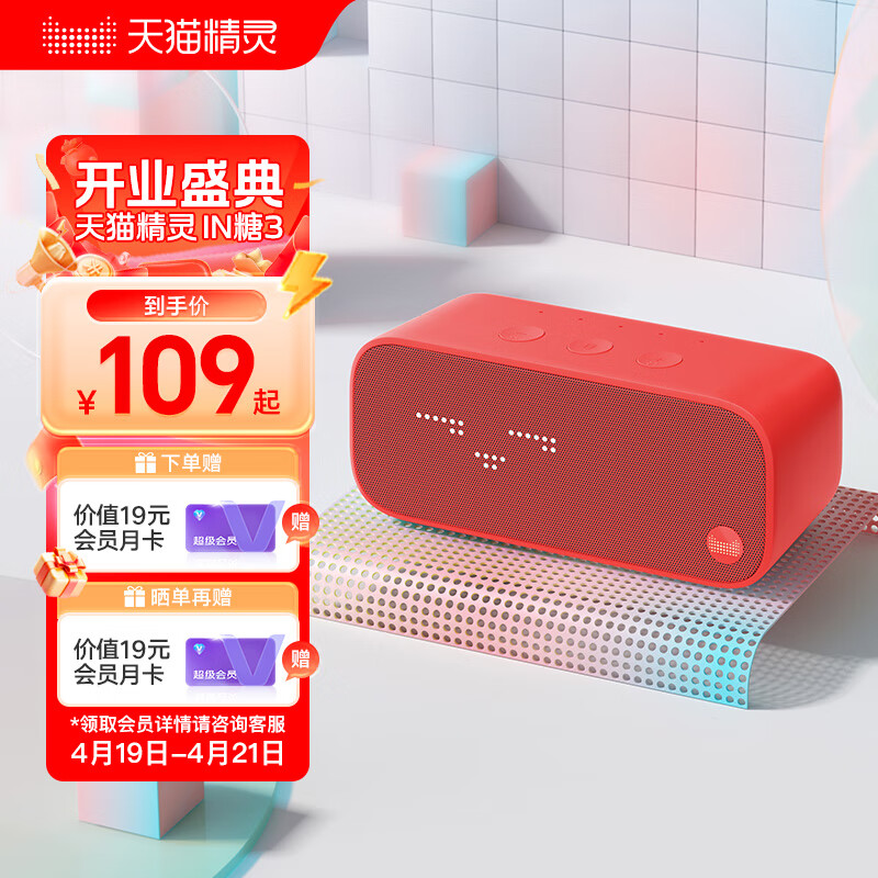 天猫精灵智能蓝牙音箱 家用智能闹钟时钟音响 声控迷你音箱 AI语音控制生日礼物 IN糖3 新潮红价格:129.00元!