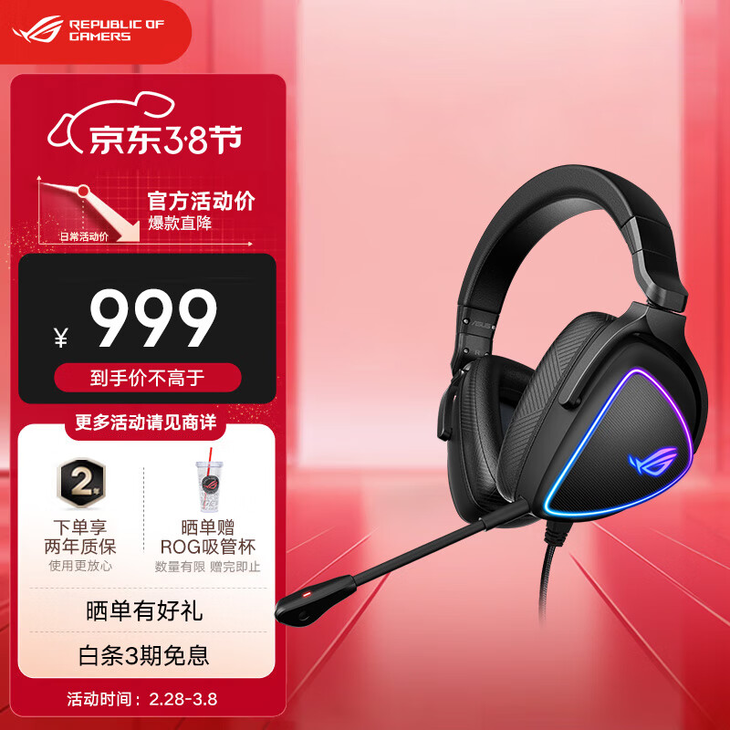 ROG 棱镜s 游戏耳机 头戴式耳机环绕7.1音效有线无延迟USB/TypeCSwitch耳机AI降噪麦克风ROG手机耳机价格:999.00元!
