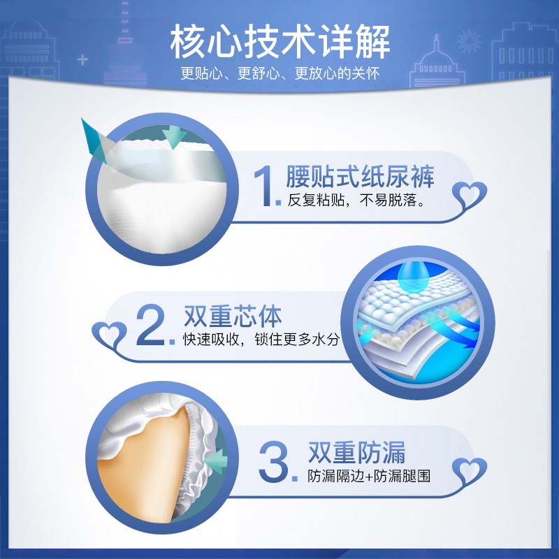 永福康金装升级大吸量成人纸尿裤L96片(腰围:85-120cm)配置参数:
