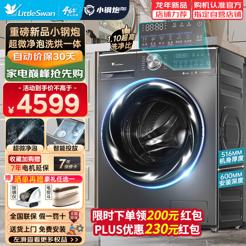 小天鹅(LittleSwan)滚筒洗衣机全自动 10KG大容量 超微净泡 智能投放水魔方【小钢炮2.0】 TD100VP28MAX价格:4599.00元!