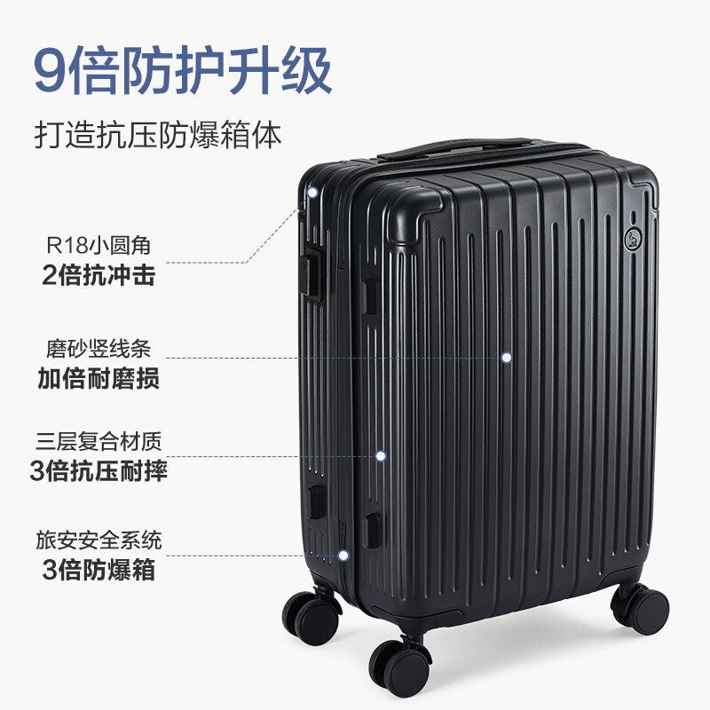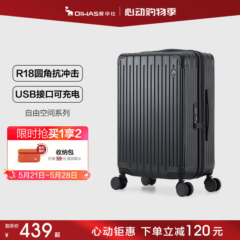 爱华仕行李箱男拉杆箱女大容量旅行箱轻便万向飞机轮26英寸密码箱骑士黑价格:439.00元!
