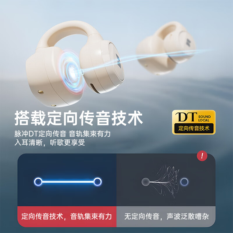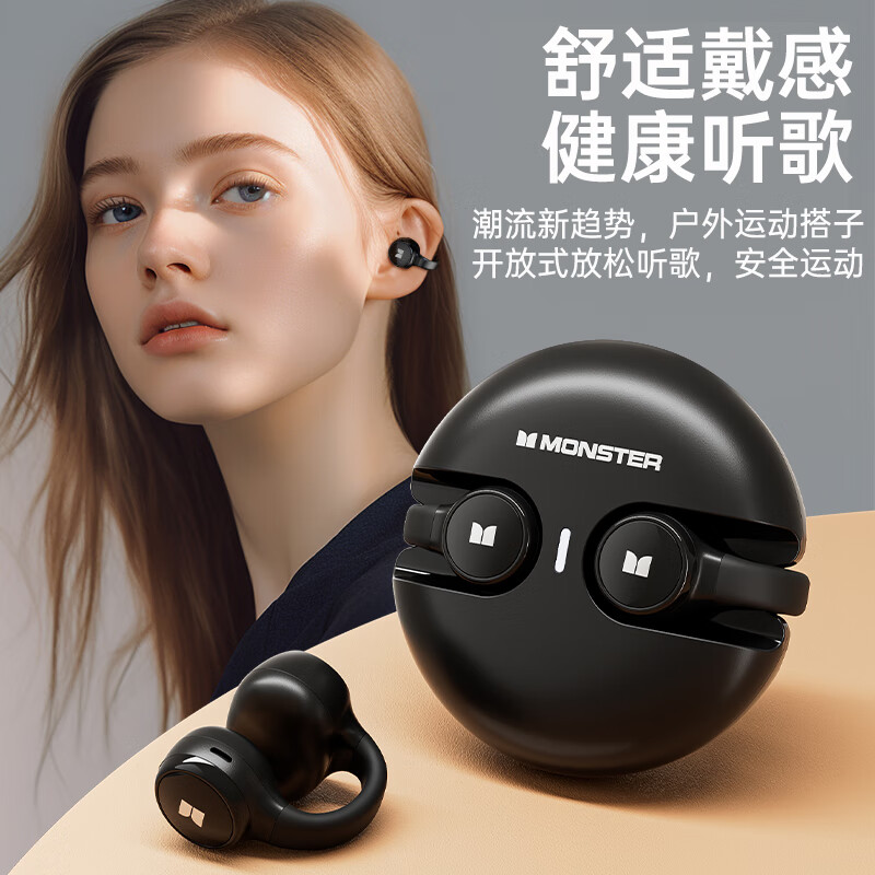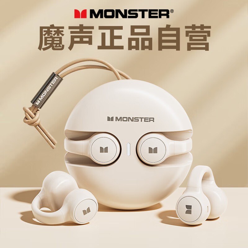 魔声(MONSTER)开放式蓝牙耳机 骨传导概念无线夹耳式不入耳运动跑步通话降噪音乐长续航 XKT21米色价格:98.80元!