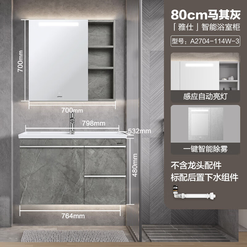 九牧(JOMOO)极简美妆智能镜浴室柜陶瓷一体洗脸盆柜组合80cm A2704-114W-3价格:2649.00元!