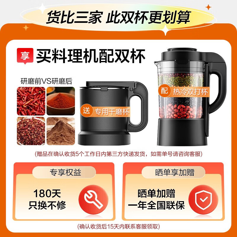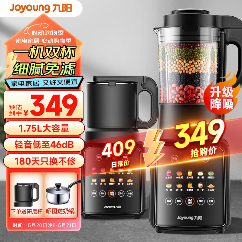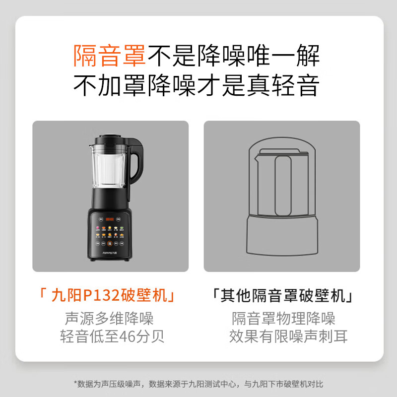 九阳(Joyoung)破壁机家用免滤豆浆机1.75L大容量高转速榨汁机低音多功能料理机 P132【升级豪华双杯】价格:349.00元!