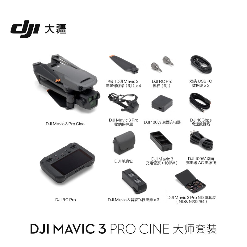 大疆 DJI Mavic 3 Pro Cine 御3大师版 三摄旗舰航拍机 哈苏相机 高清专业无人机 + 随心换 1 年版价格:33976.00元!