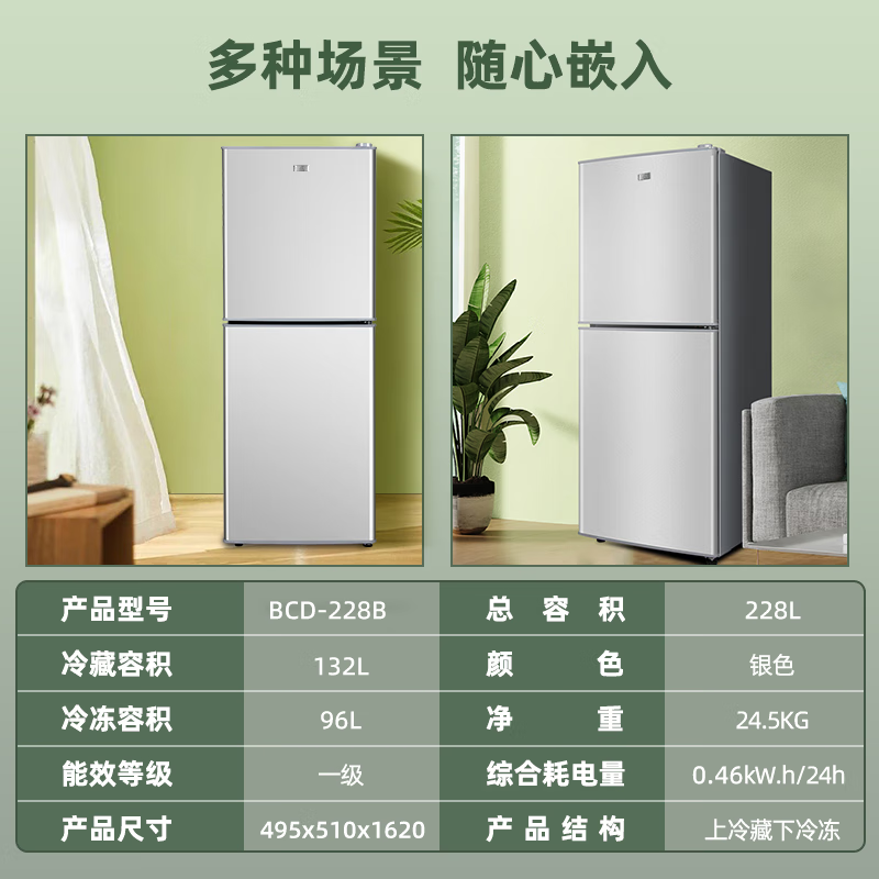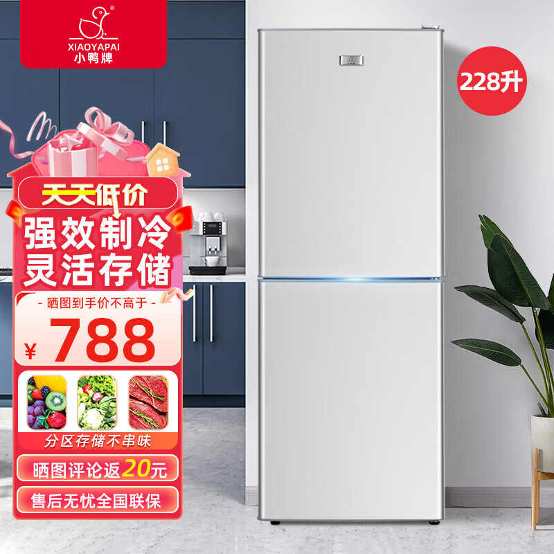 小鸭牌冰箱双开门228L冰箱二门家用冰箱家用租房用大容量家用双门电冰箱一级能效节能省电低燥 BCD-228B价格:808.00元!