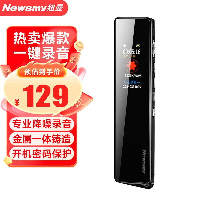 纽曼录音笔 V03 16G 专业录音设备 高清降噪 长时录音 学习培训交流 商务办公会议 录音器 哑黑价格:159.00元!