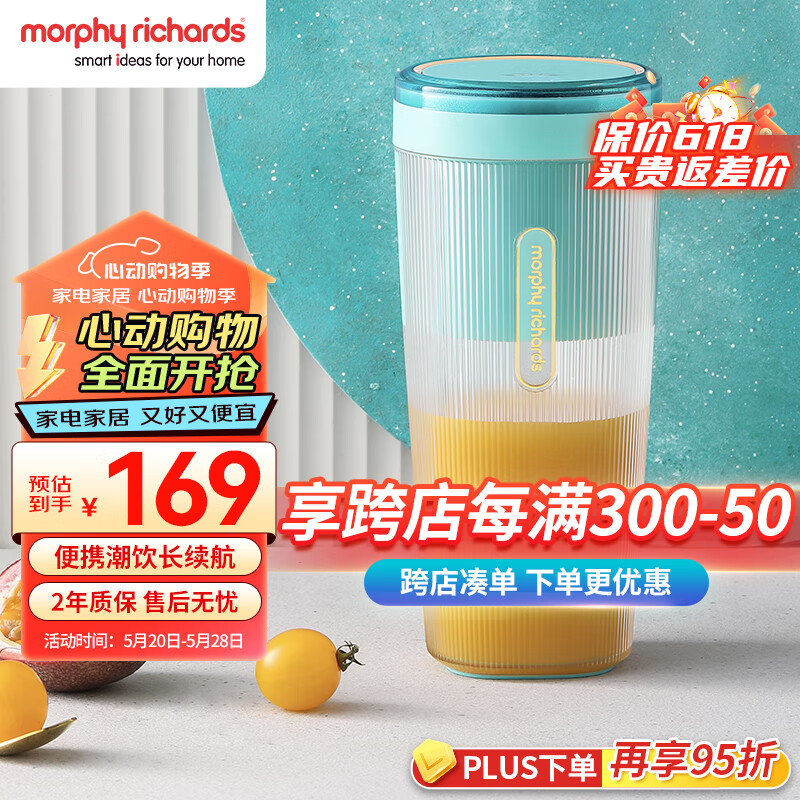 摩飞电器(Morphyrichards)榨汁机 便携式榨汁杯 网红无线充电果汁机 料理机迷你随行杯 MR9800 薄荷蓝价格:169.00元!