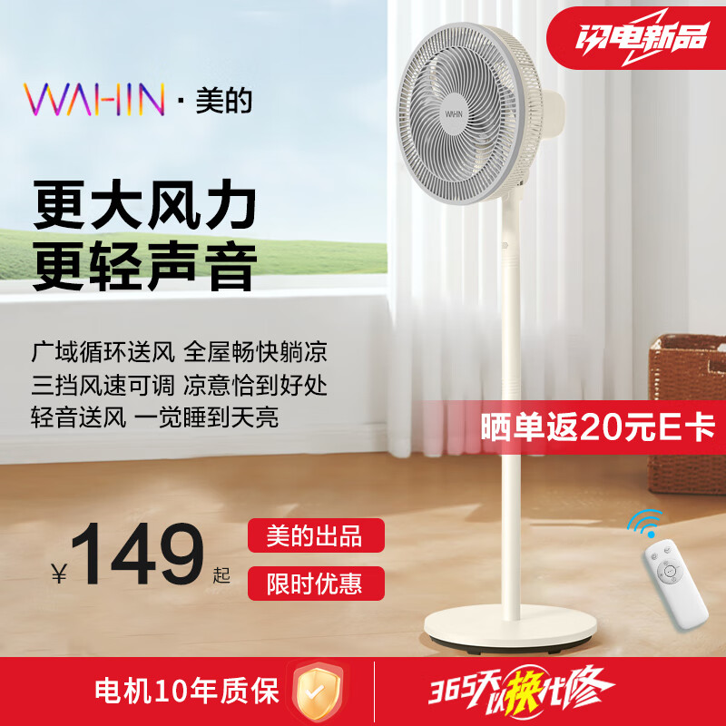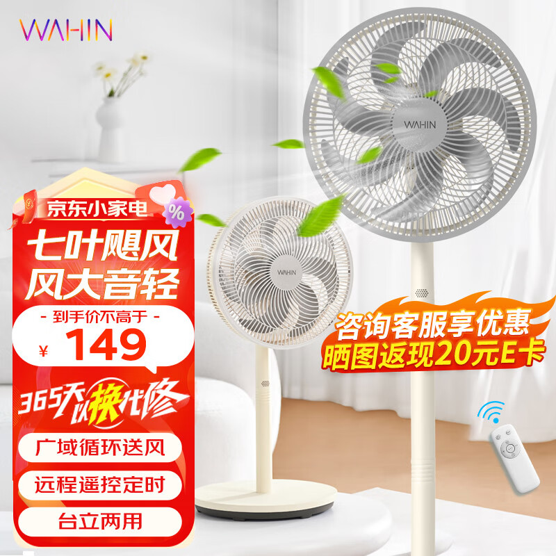 华凌美的出品 电风扇家用7叶落地扇摇头电风扇循环风扇大风量电扇立式轻音风扇台地两用遥控WH-FSA3003价格:149.00元!