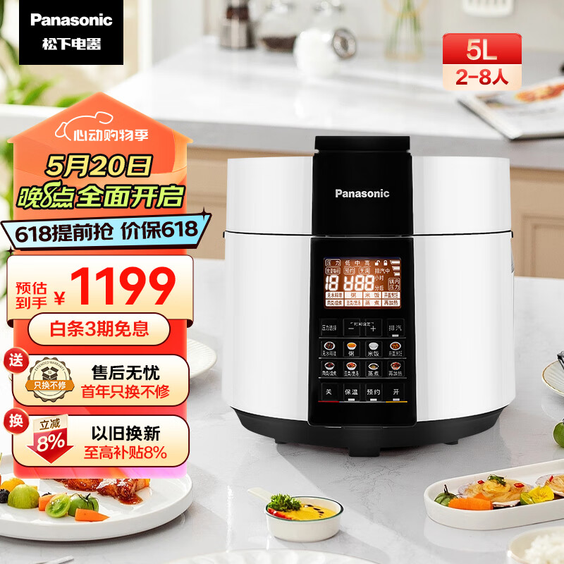 松下(Panasonic)5L智能电锅 电饭锅 1-8人 家用多功能煲无水料理大容量电饭煲 NF-PS509价格:839.00元!