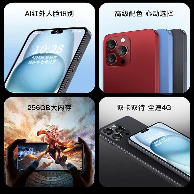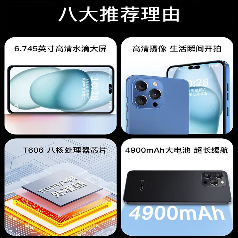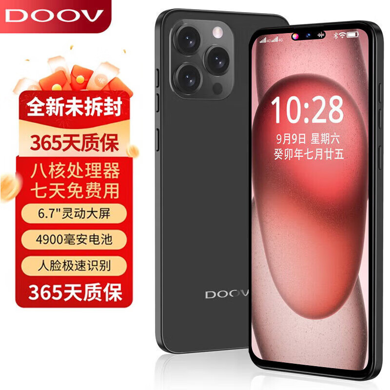 朵唯(DOOV)X15 pro大屏超薄智能手机灵动岛互娱4g通长续航大电池学生机安卓超薄便宜256G黑色价格:579.00元!