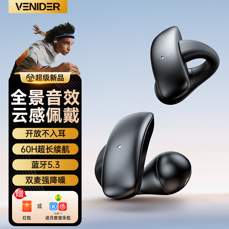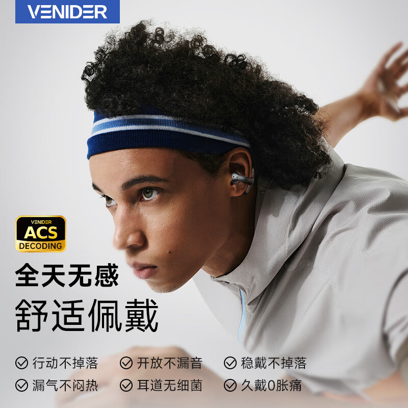 VENIDER蓝牙耳机 骨传导概念无线耳机开放式不入耳夹式 游戏高音质降噪耳机 运动跑步骑行通用S10黑价格:158.00元!
