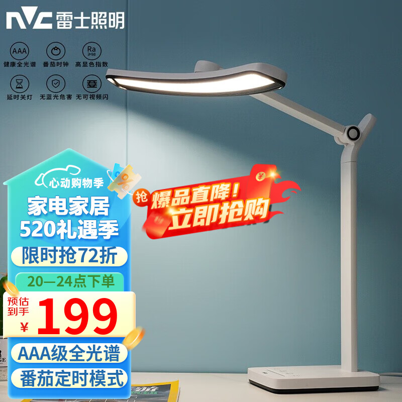 雷士(NVC)AA级护眼插电书桌护眼灯中小学生学习宿舍卧室儿童学习台灯-明远价格:274.00元!