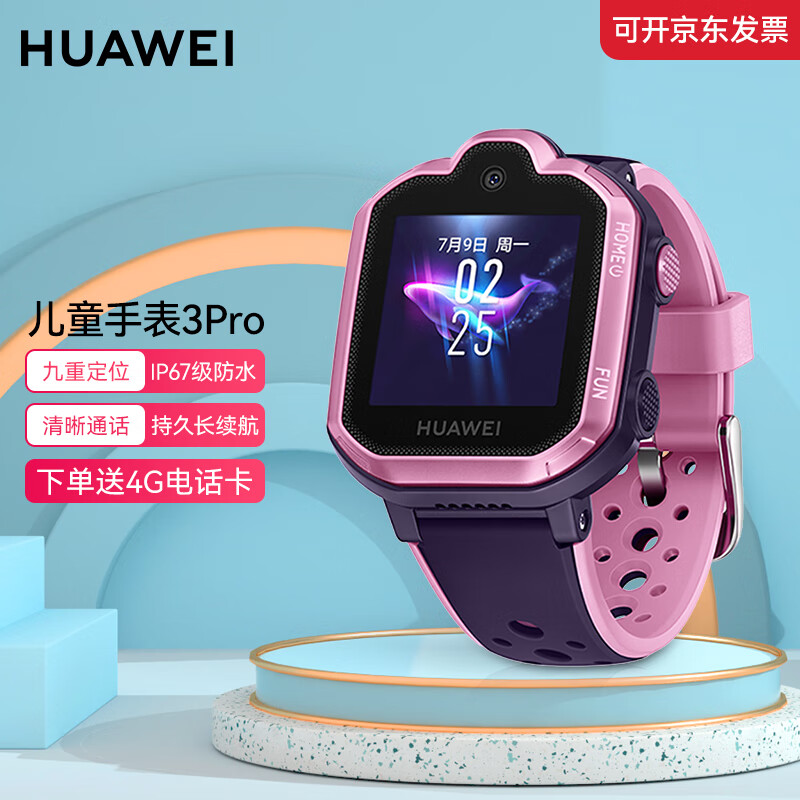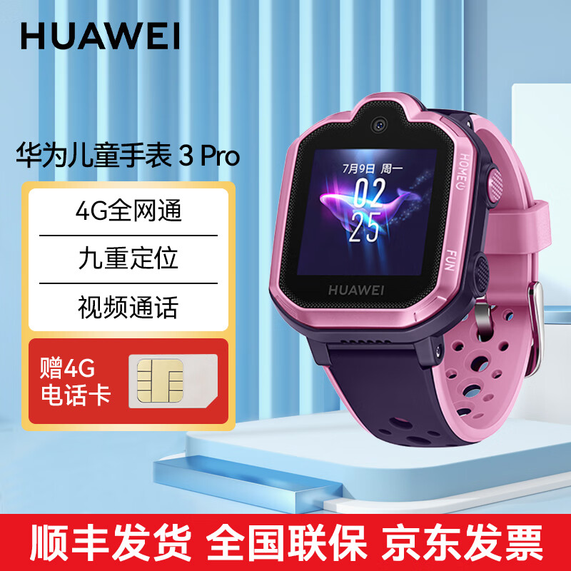 华为(HUAWEI)儿童电话手表 3Pro /视频通话/九重定位/小度助手 星云粉价格:446.00元!
