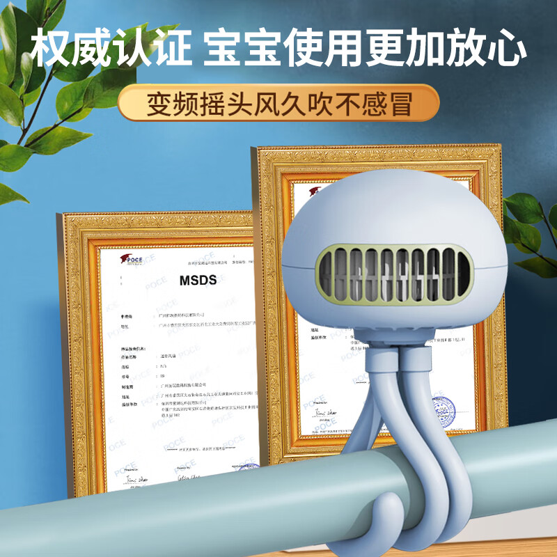 斯泰克【防夹手变频摇头】 婴儿车风扇BB推车宝宝童车八爪鱼迷你便携风扇儿童小孩usb可充电无叶水母电扇价格:116.50元!
