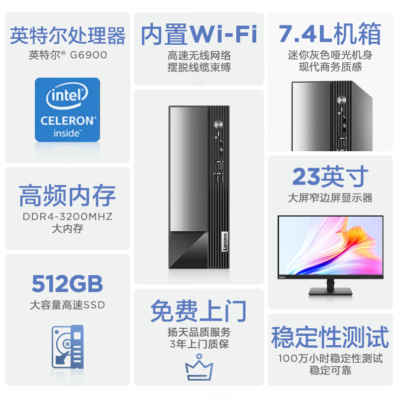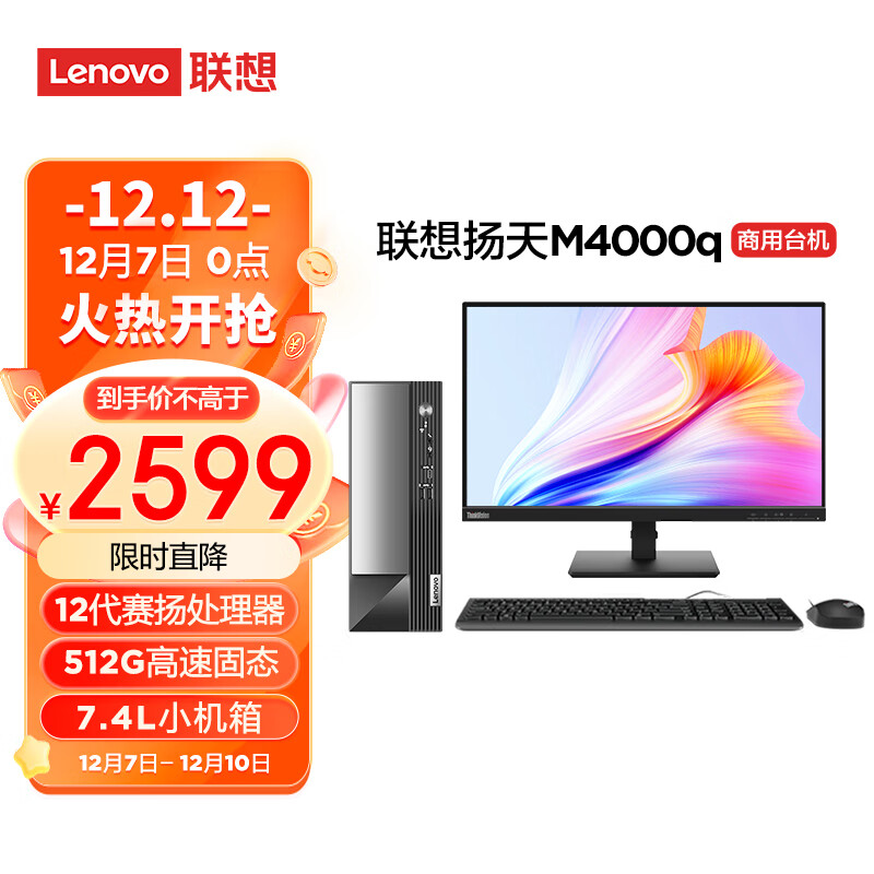 联想(Lenovo)商用办公台式机电脑主机 扬天M4000q 英特尔处理器(G6900 8G 512G SSD Win11)23英寸价格:2599.00元!