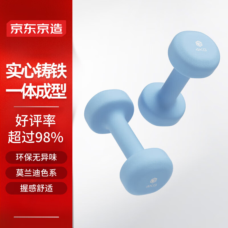 京东京造哑铃 男士女士儿童家用小哑铃 彩色浸塑纯铁健身器材 4KG两只装价格:116.00元!