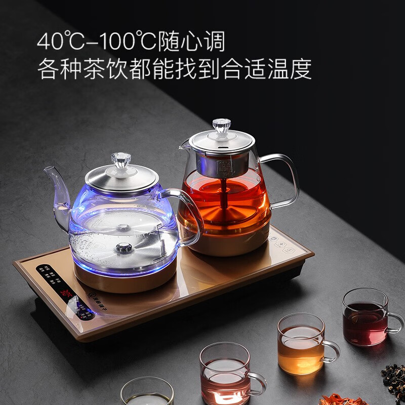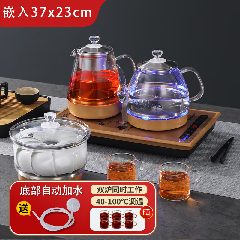 FUNORK 37X23全自动底部上水电热烧水壶家用抽水泡茶专用保温茶台一体机茶桌茶几嵌入式茶具套装 金色 - 三件套(嵌入37x23cm) 1L价格:359.00元!