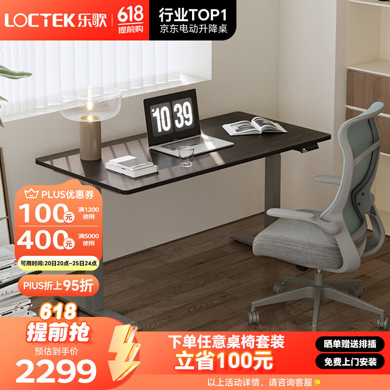 乐歌电动升降桌电脑桌双电机站立办公 E3/1.4m 实木黑胡桃木色套装价格:2299.00元!